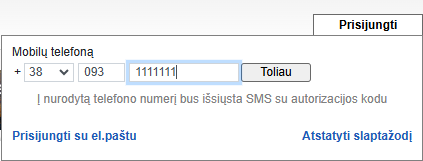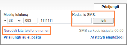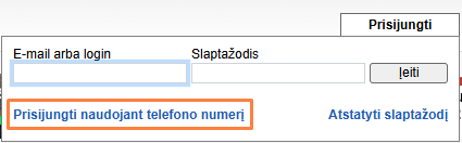2.5. Įėjimas į tinklapį, naudojant telefono numerį
