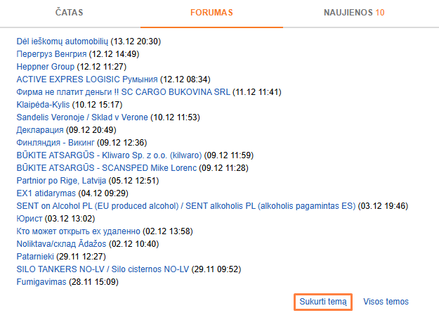 arba Pagrindiniame puslapyje pasirinkite skirtuką FORUMAS ir paspauskite Sukurti temą.