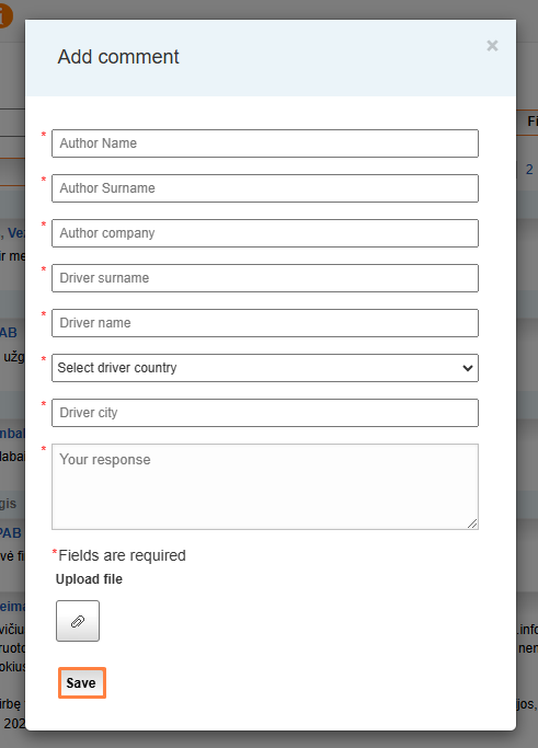 Jei norite įvesti informaciją apie nesąžiningą vairuotoją, spustelėkite mygtuką Pridėti atsiliepimą, tada užpildykite formą, parašykite atsiliepimą ir spustelėkite mygtuką Išsaugoti atsiliepimą.