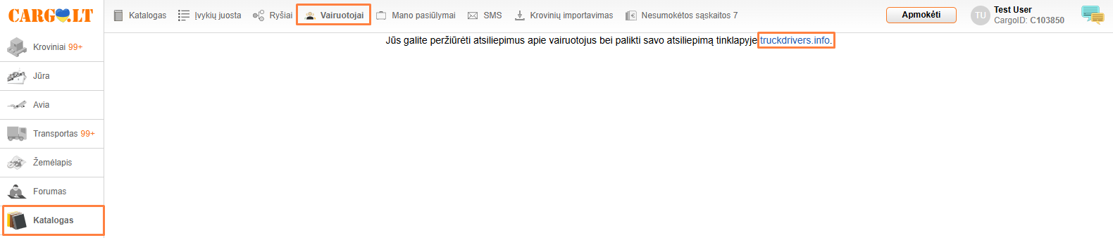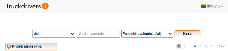 Jei norite ieškoti informacijos apie vairuotoją paieškos laukelyje, įveskite vairuotojo pavardę arba vardą, spustelėkite Ieškoti. Pagal šio vairuotojo vardą bus surinkti visi komentarai, palikti jo adresu.
