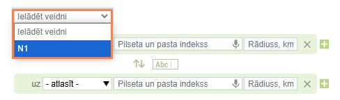 Ķeksītis Valsts ietvaros. Ja norādījāt meklēšanas rādiusu, tad pa kreisi no iekraušanas / izkraušanas punkta var atzīmēt valsti.