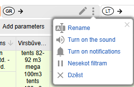 Varat apturēt cilnes izsekošanu. Pašreizējo piedāvājumu meklēšana būs pieejama, bet informācija par jaunajiem piedāvājumiem netiks saņemta. Lai apturētu cilnes atjaunināšanu, noklikšķiniet uz ikonas Nesekot filtram.