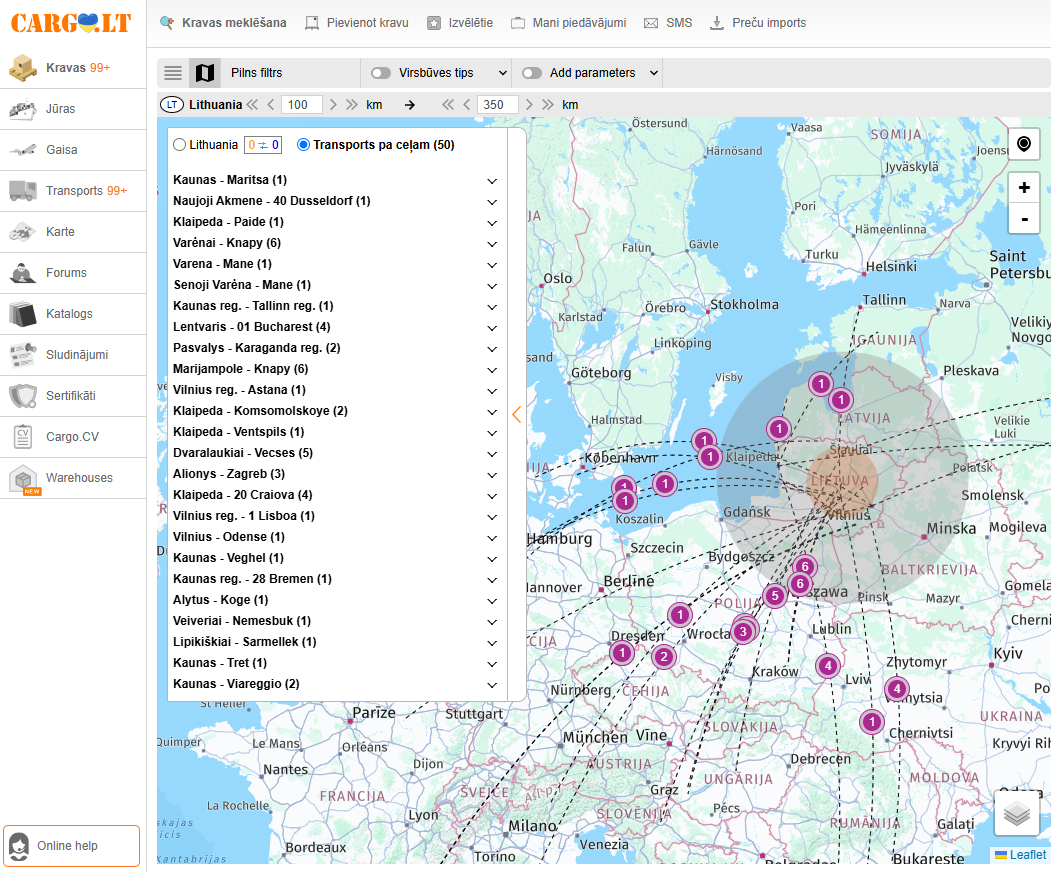 1. Mana automašīna atrodas Dresdenā D01, Vācijā, bet esmu gatavs ņemt kravu no kaimiņu reģioniem PL68, PL66, PL59, CZ40, CZ47 uc. Kā es varu nekavējoties atrast interesantus kravas piedāvājumus?