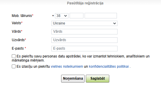 un pēc tam veiciet vienkāršotu reģistrāciju, pievienojot savu kontaktinformāciju.