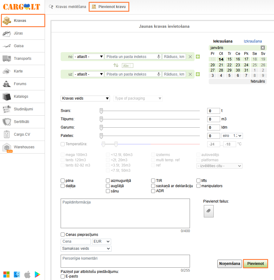Reģistrētas privātpersonas ir tiesīgas publicēt ne vairāk kā 4 kravas mēnesī. Citu uzņēmumu kontaktinformācija nav pieejama, kā arī dažas vietnes sadaļas. Privātpersonas nevar publicēt transportu vietnē.
