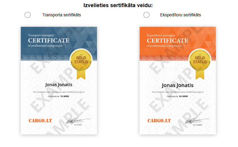 Menedžeris var saņemt divu veidu sertifikātus: