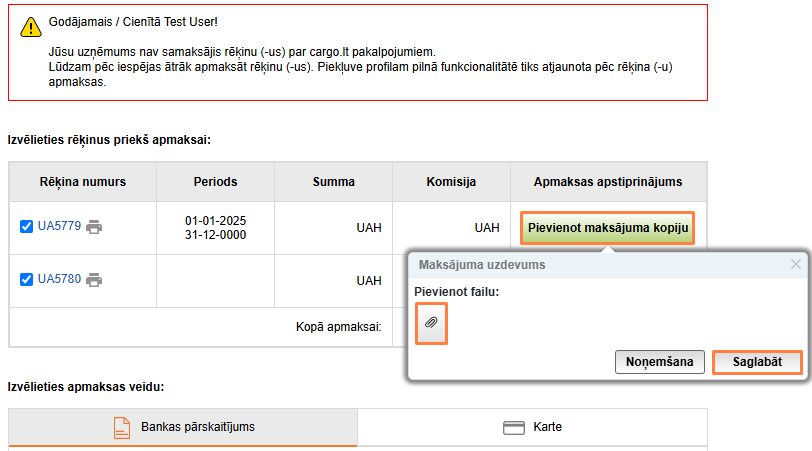 Ja pēc kvīts augšupielādēšanas piekļuve vietnei nav atjaunota, sazinieties ar vietnes administratoru: info@cargo.lt.