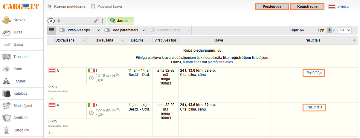 1.9. Kur apskatīt klienta kontaktus kravas / transporta meklēšanas lapā?