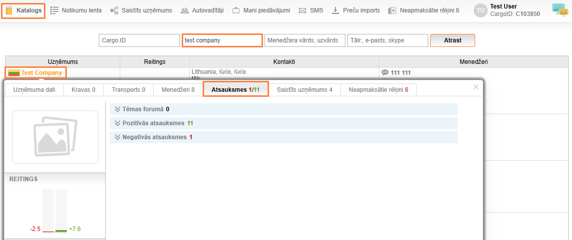 Lai noskaidrotu sava uzņēmuma reitingu un atsauksmes, atrodiet uzņēmumu sadaļā Katalogs un dodieties uz uzņēmuma profilu, noklikšķinot uz tā nosaukuma.