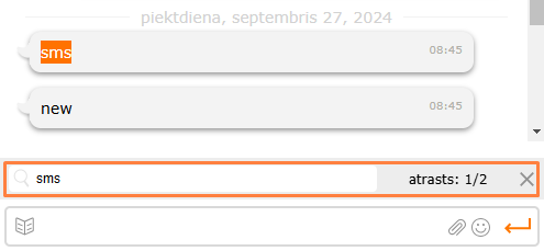 Atrastās atbilstības tiks izceltas čata izziņās ar krāsu, un to kopējais skaits tiks norādīts virs izziņas ievades lauka.