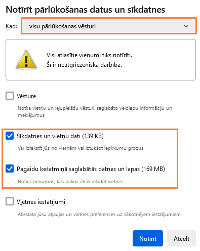 Nospiediet Ctrl+Shift+Delete. Atvertajā logā ar iestatījumiem izvēlieties visu pāriukošanas vēsturi (Everything). Ja iestatījumi netiek parādīti, noklikšķiniet uz Detaļas (Details), izvēlieties Kešatmiņu (Cache) un nospiediet Dzēst privātos datus (Clear Now).