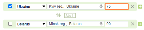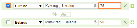 Šādā gadījumā sakritības tiks atlasītas noteiktā rādiusā, bet tikai norādītajās valstīs. Ja ķeksītis nav uzlikts, jūs redzēsiet atbilstību norādītajos rādiusos, neatkarīgi no konkrēto valstu robežām.