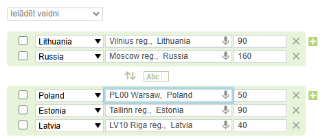 Vairāku piedāvājumu pievienošana. Lai vienlaikus pievienotu vairākus transporta piedāvājumus, noklikšķiniet uz pogas Pluss.